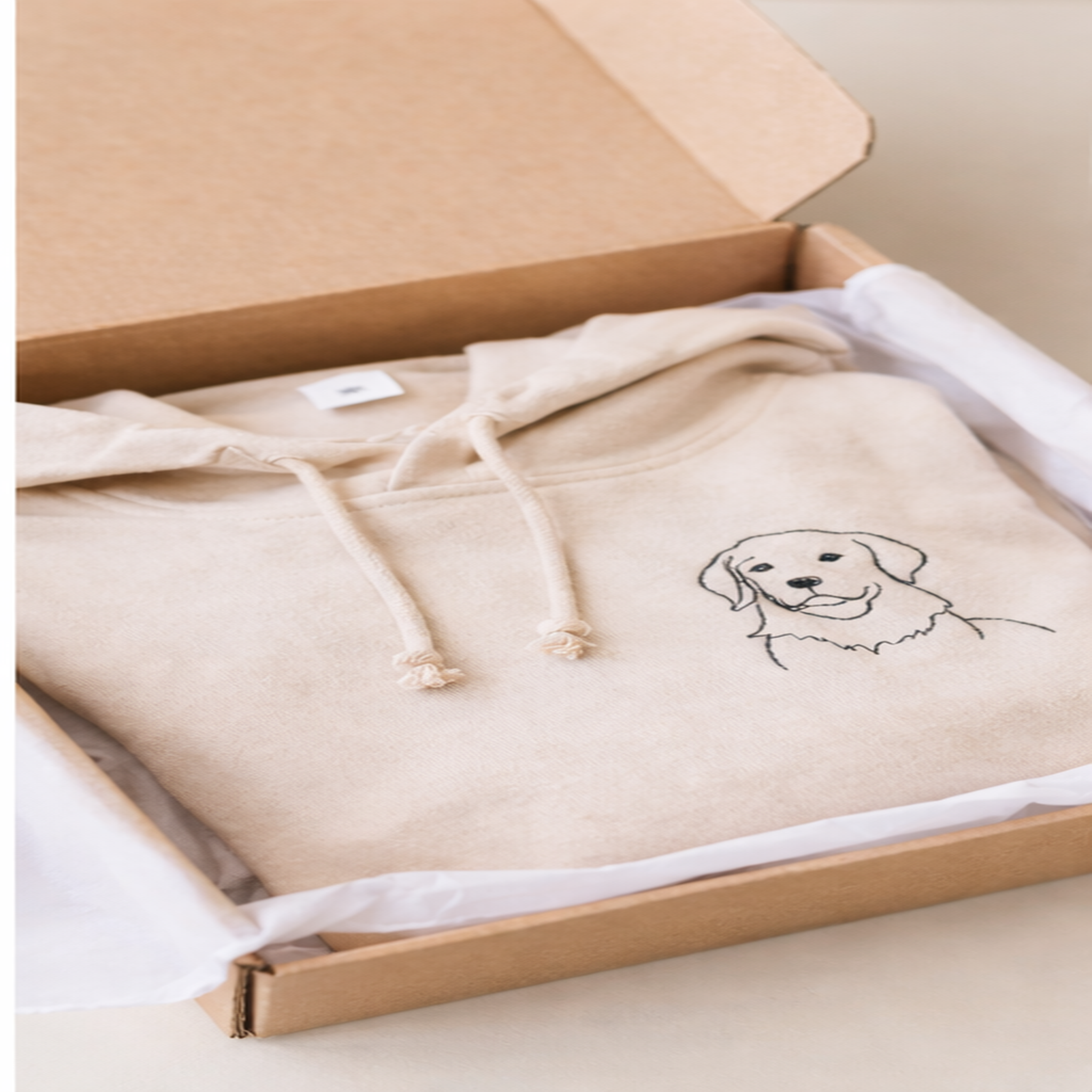 Upload your photo, choose your style (hoodie or sweatshirt), select the size and thread color, then add to cart.